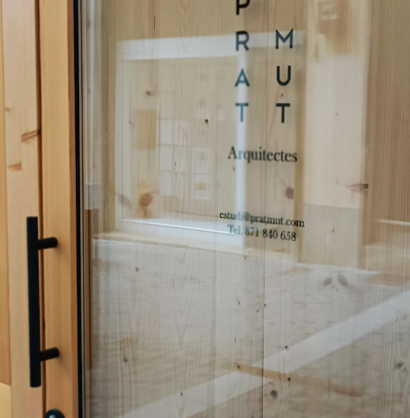Fabricació i instal.lació de tancaments exteriors de perfileria europea per a l'estudi d'arquitectura Prat Mut. En aquest cas s'ha triat fusta d' Avet massís amb vidres Climalit i portellons en tauler massís tricapa. Un resultat molt efectiu, amb una estètica coplanar neta, un perfecte i eficient aïllament; tant tèrmic com acústic. I un acabat i estil natural, principal adjectiu de la fusta, la nostra millor matèria prima.