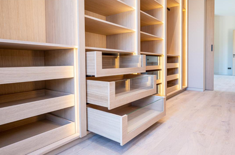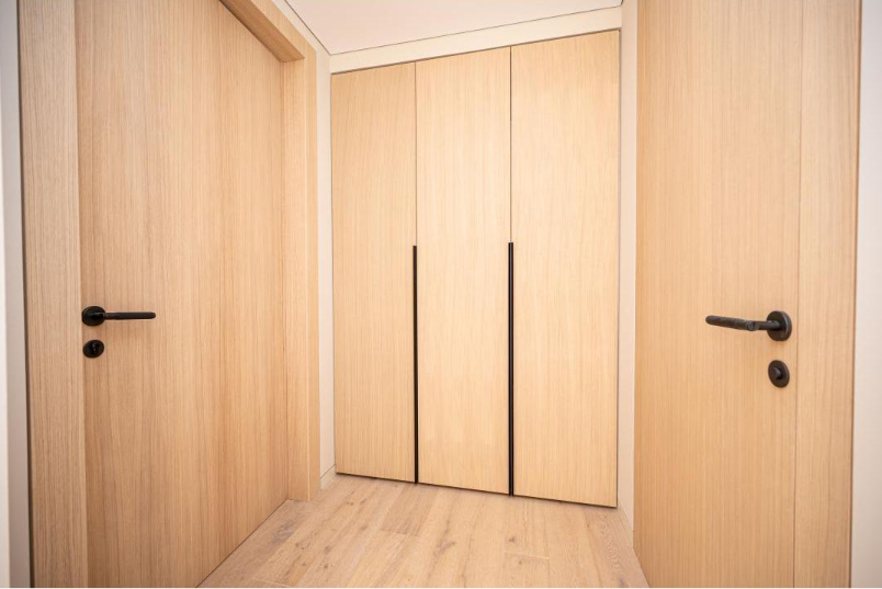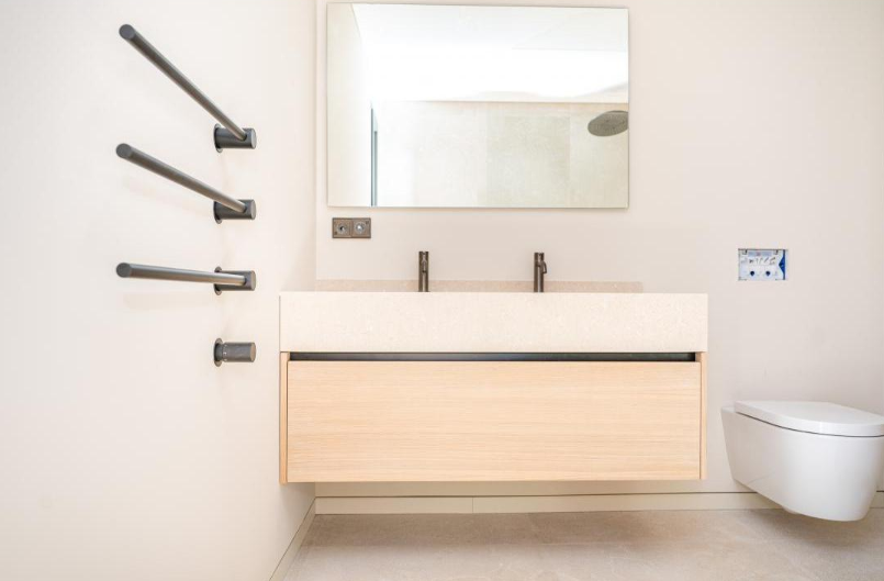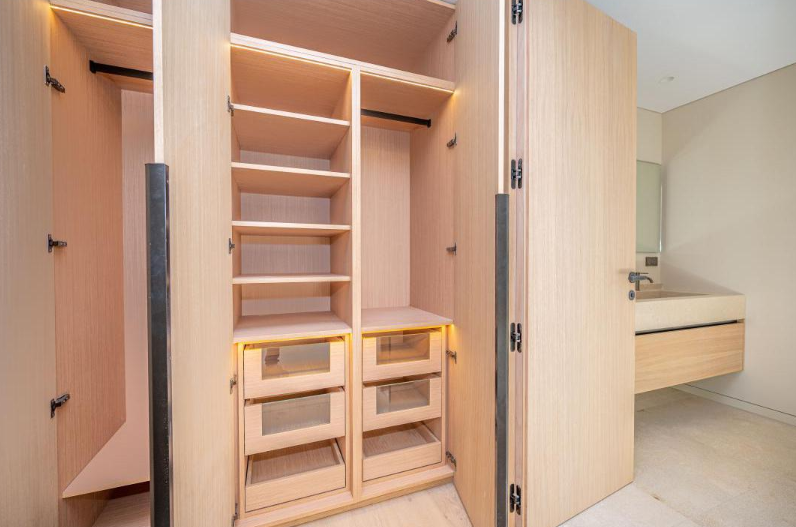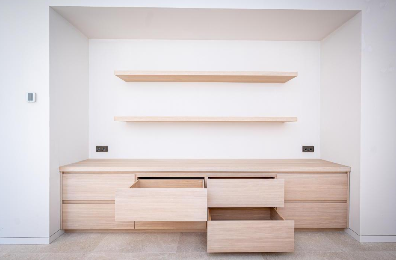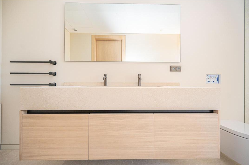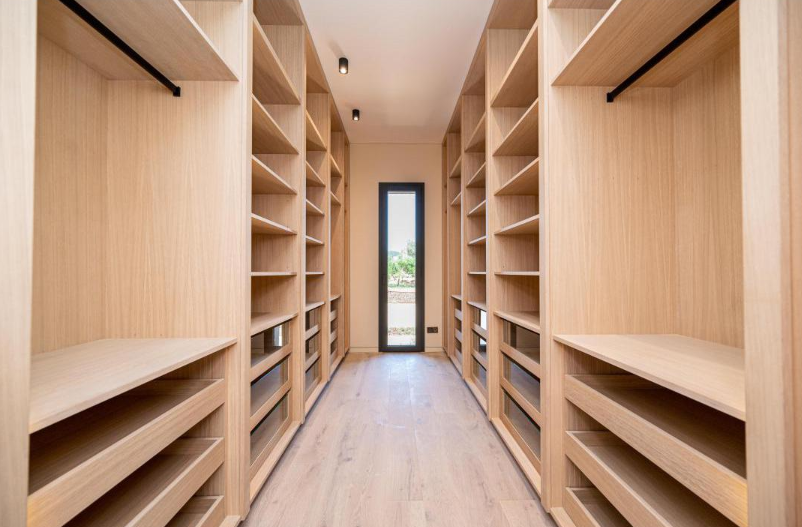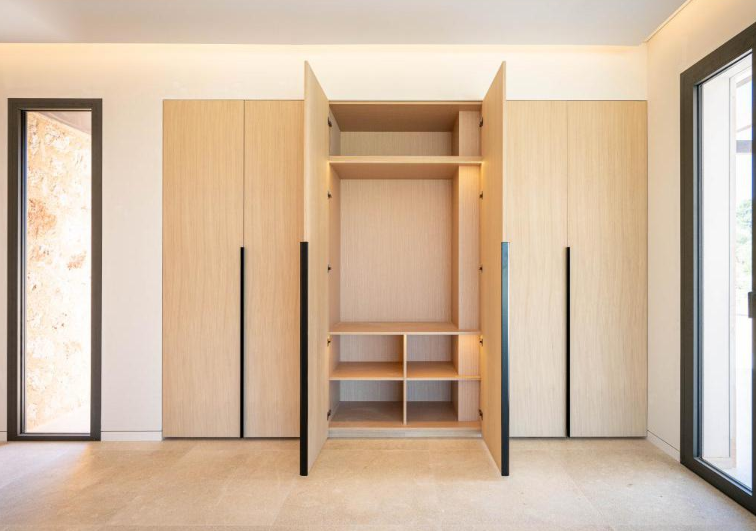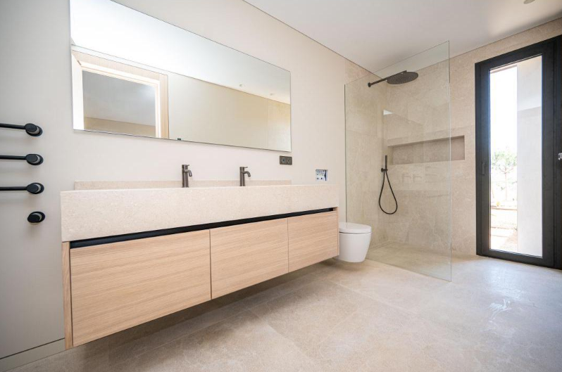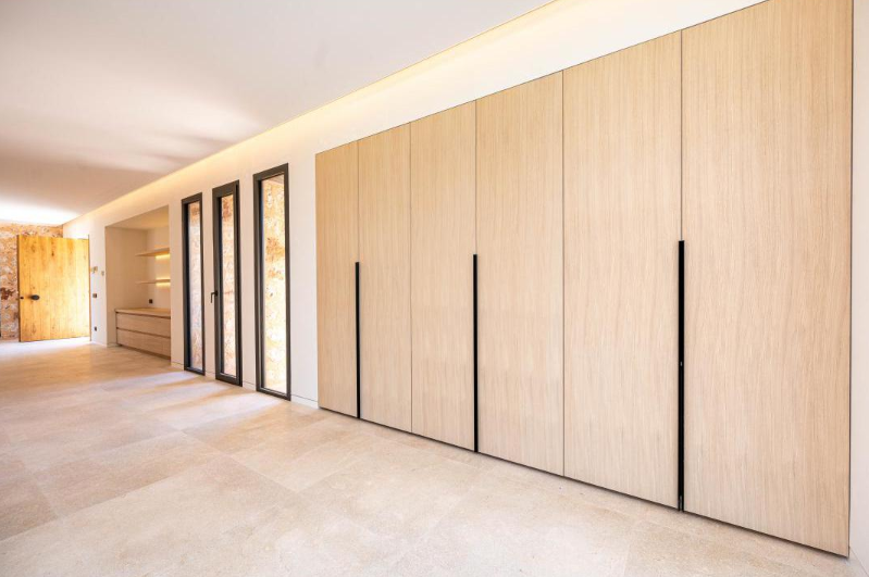 En esta gran vivienda situada en el corazón de Mallorca ha sido el escenario para la integración de nuestros trabajos de carpintería, mobiliario y decoración. Se proyectaron una gran cantidad de puertas en madera de roble con un diseño completamente integrado con el diseño de la vivienda, vestidores y armarios a medida de roble totalmente equipados con iluminación LED automática. Mobiliario de baños igualmente en roble con frontales con tiradores GOLA negros muy elegantes; un gran reto al que le hemos dado nuestra mayor calidad de acabado, como siempre da la firma de Fusteria Comas.